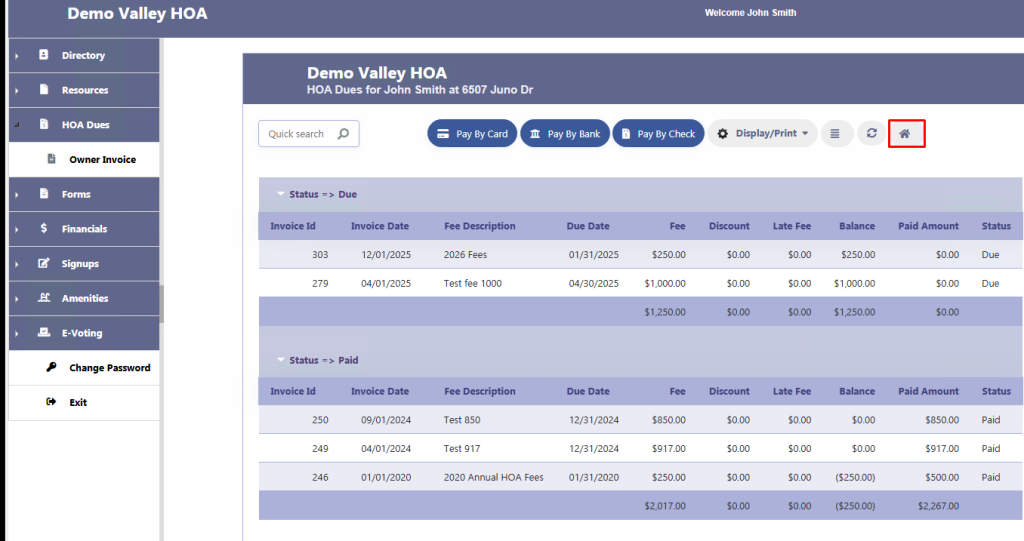 If you own multiple units within the same HOA, RunHOA allows you to switch between those units using a single login—so you can view invoices, balances, and payment history for each property you own.