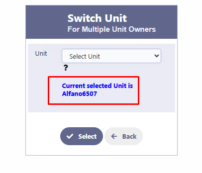 Switching Between Multiple Units For Dues/Payments (For Owners with More Than One Property)