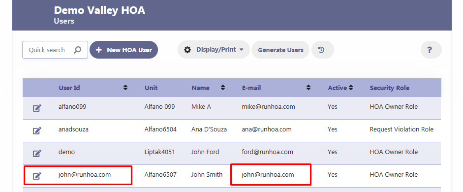 - Each unit in RunHOA has one or more owner email addresses associated with it.